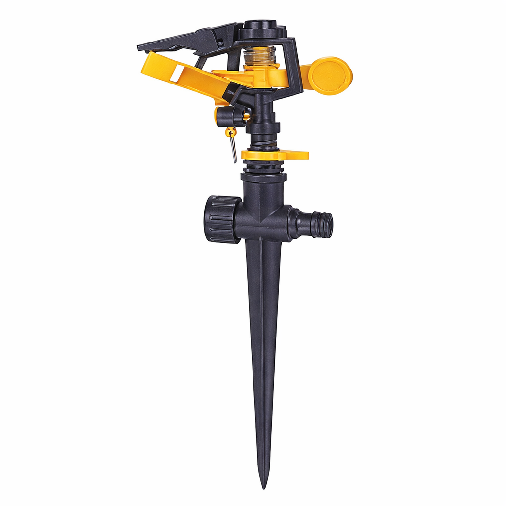 Aspersorul cu impuls este conceput pentru irigarea eficientă a suprafețelor verzi, permițând reglaje multiple ale zonei udate.