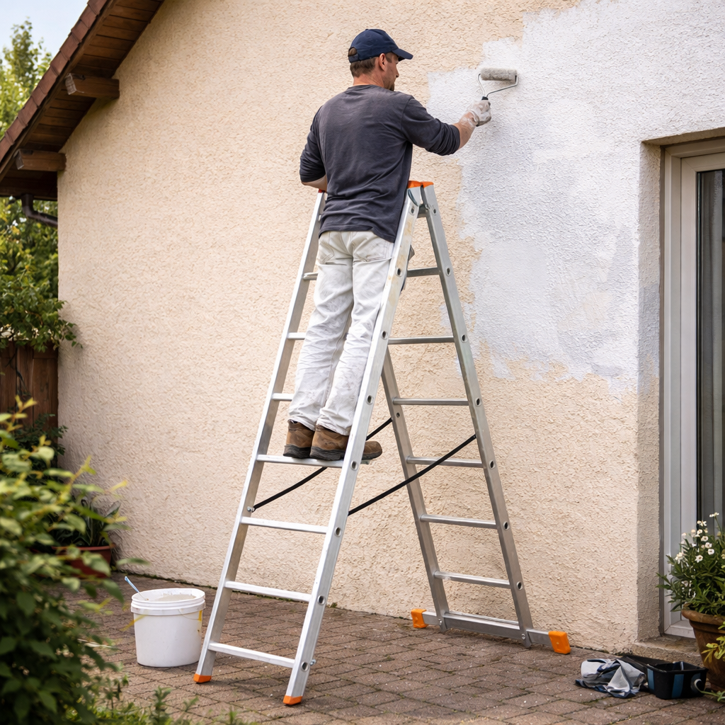 Scara din aluminiu 2x8 trepte este pliabilă și practică, destinată lucrărilor la înălțime în gospodărie, mentenanță și aplicații uzuale.
