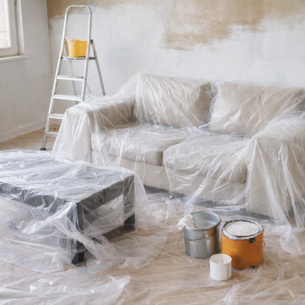 Folia de acoperire din polietilenă este destinată protecției temporare a suprafețelor și obiectelor împotriva prafului și umezelii.
