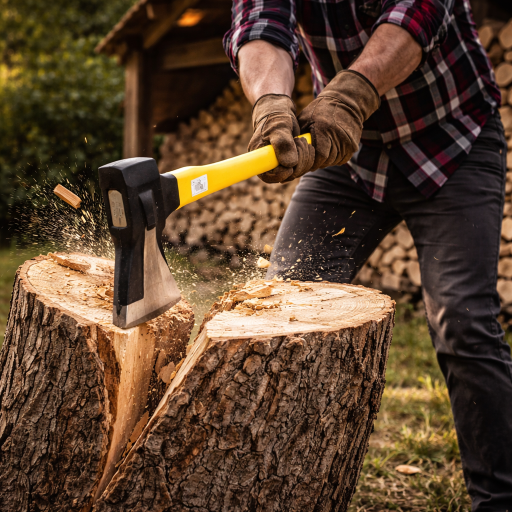✔️ Ideal pentru: tăiere lemn de foc, despicarea buștenilor, tăiere ramuri groase, lucrări gospodărești intensive